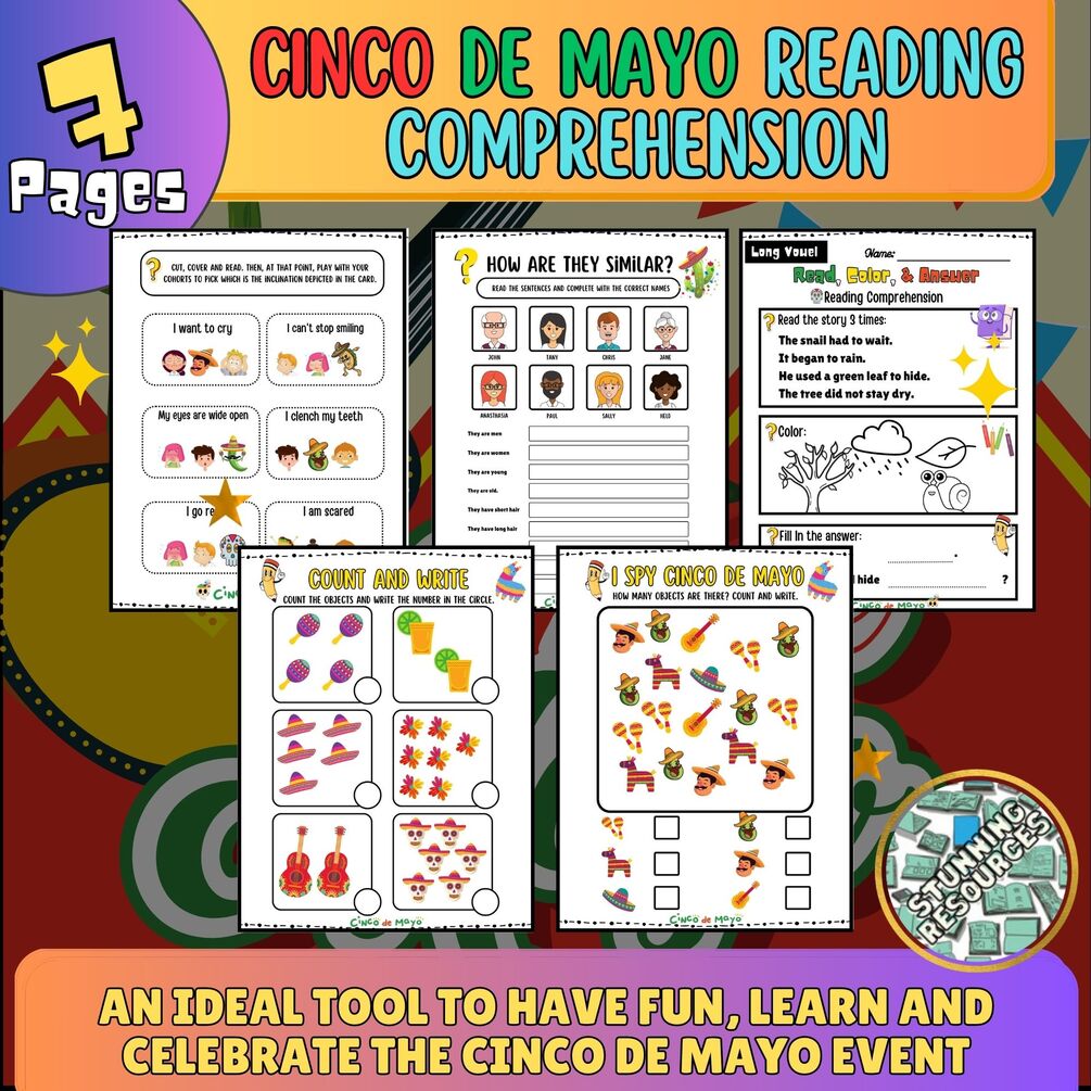 Whether used as a supplement to a larger lesson plan or as a standalone activity, our Cinco de Mayo Reading Comprehension Activities Worksheets product is a great way to engage children in learning about this important holiday while also developing their reading and comprehension skills. Order now and make learning fun for your children this Cinco de Mayo!